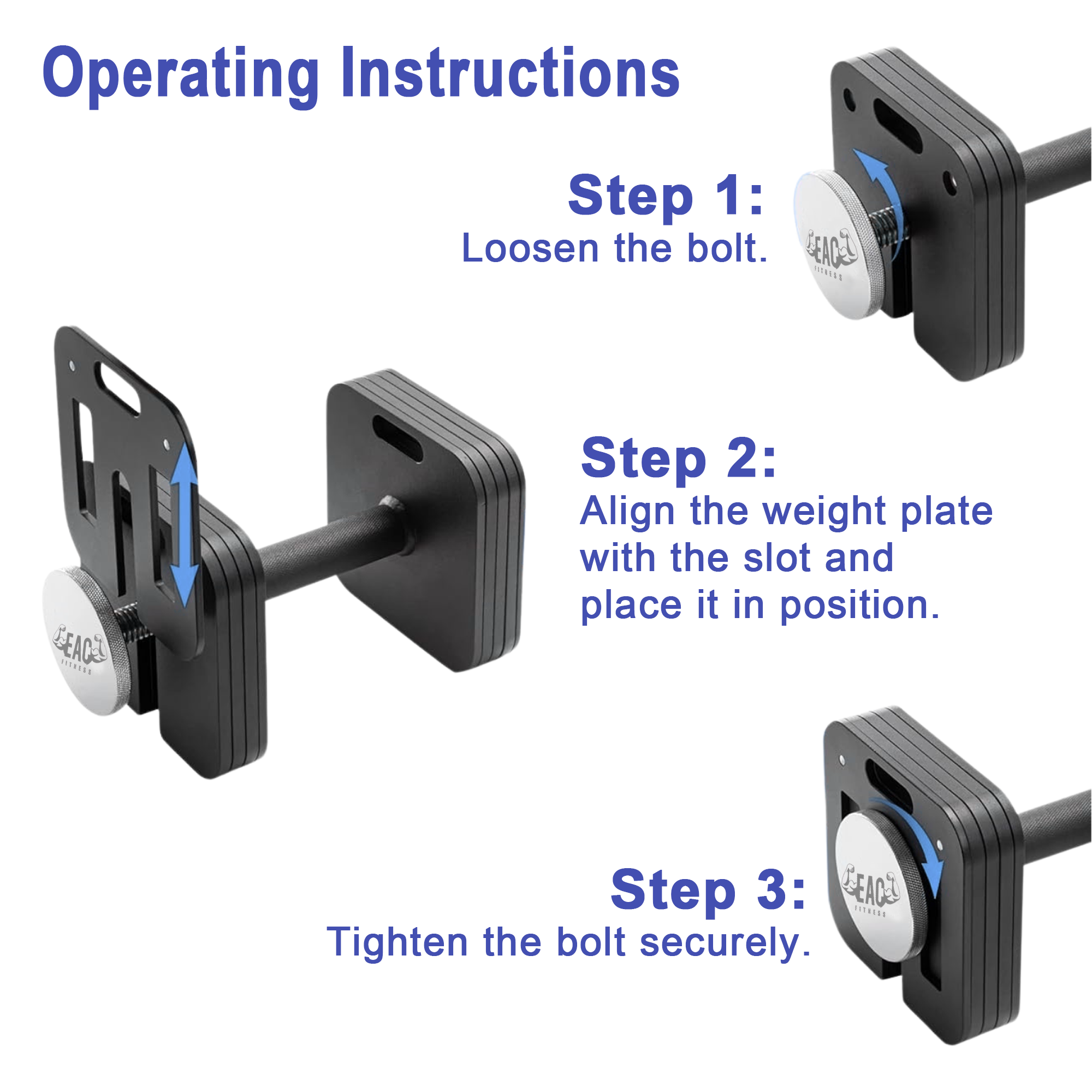 EAC Square Adjustable Dumbbell — Up to 80 lb · Quick-Adjust Knurled Handle